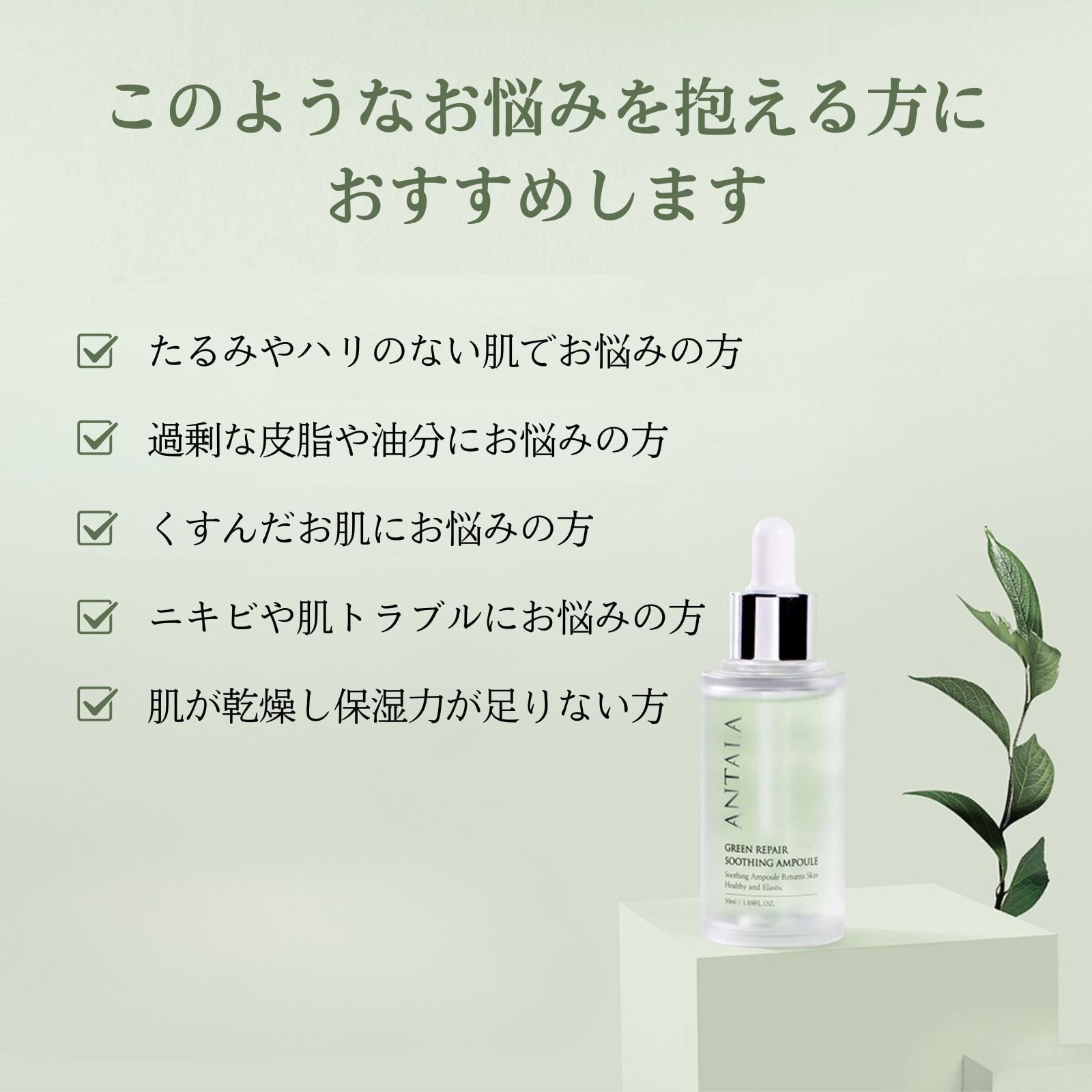 アンタラ グリーン リペア スムージング 美容液 / ANTALA 韓国 コスメ 正規品 EGF CICA シカ ヒアルロン酸 アンプル 導入液 シワ ハリ たるみ ケア 鎮静 整肌 保湿 潤い 対策 スキンケア 美容 集中ケア 低刺激 ふっくら もっちり 弾力 美肌 敏感肌 レディース