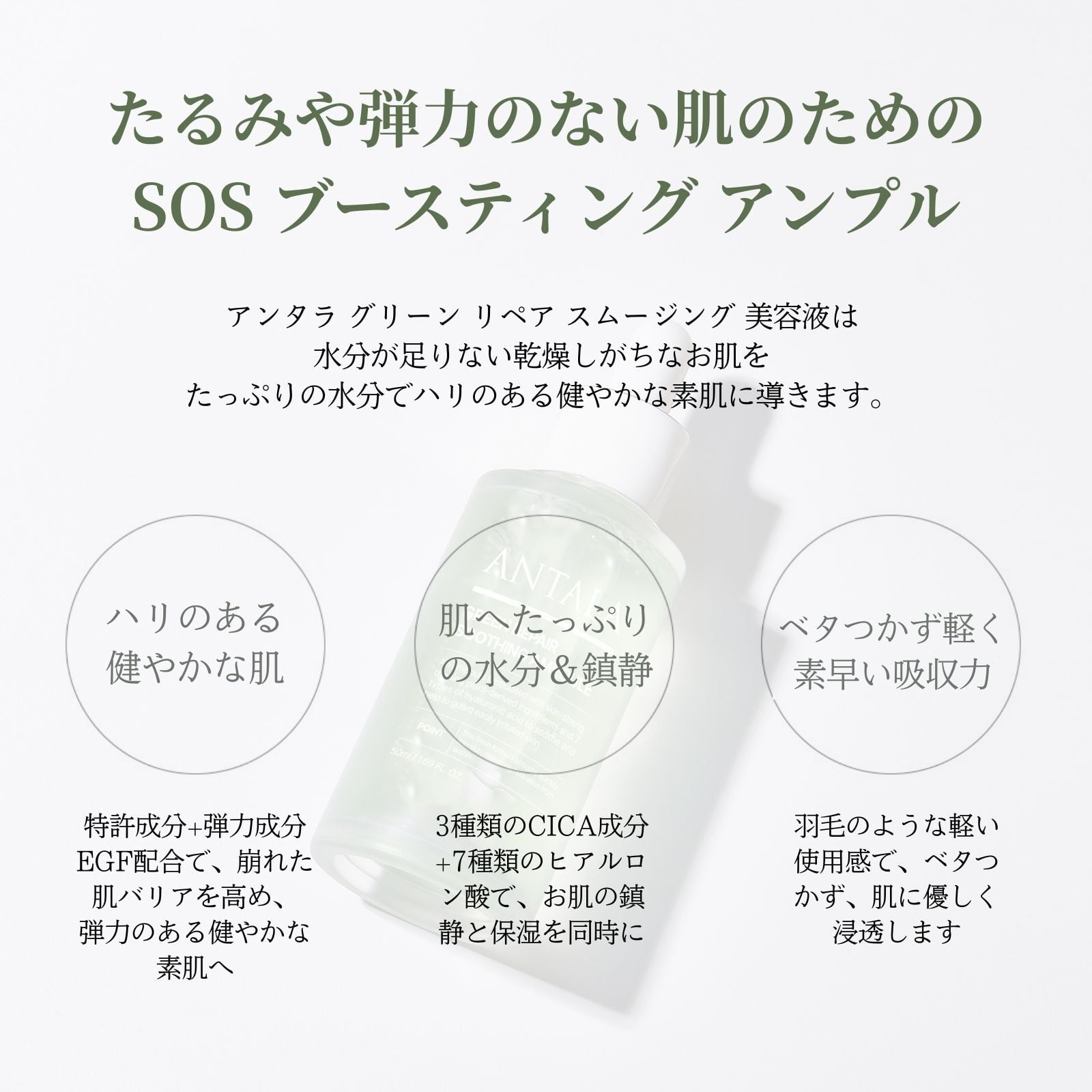韓国の有名スキンケアブランド『ANTALA』の人気商品「ヴァイオレット ツヤ肌集中マスク」と「グリーン リペア スムージング 美容液」のお得なスキンケアセットです。ギフトやプレゼントにもおすすめです♪