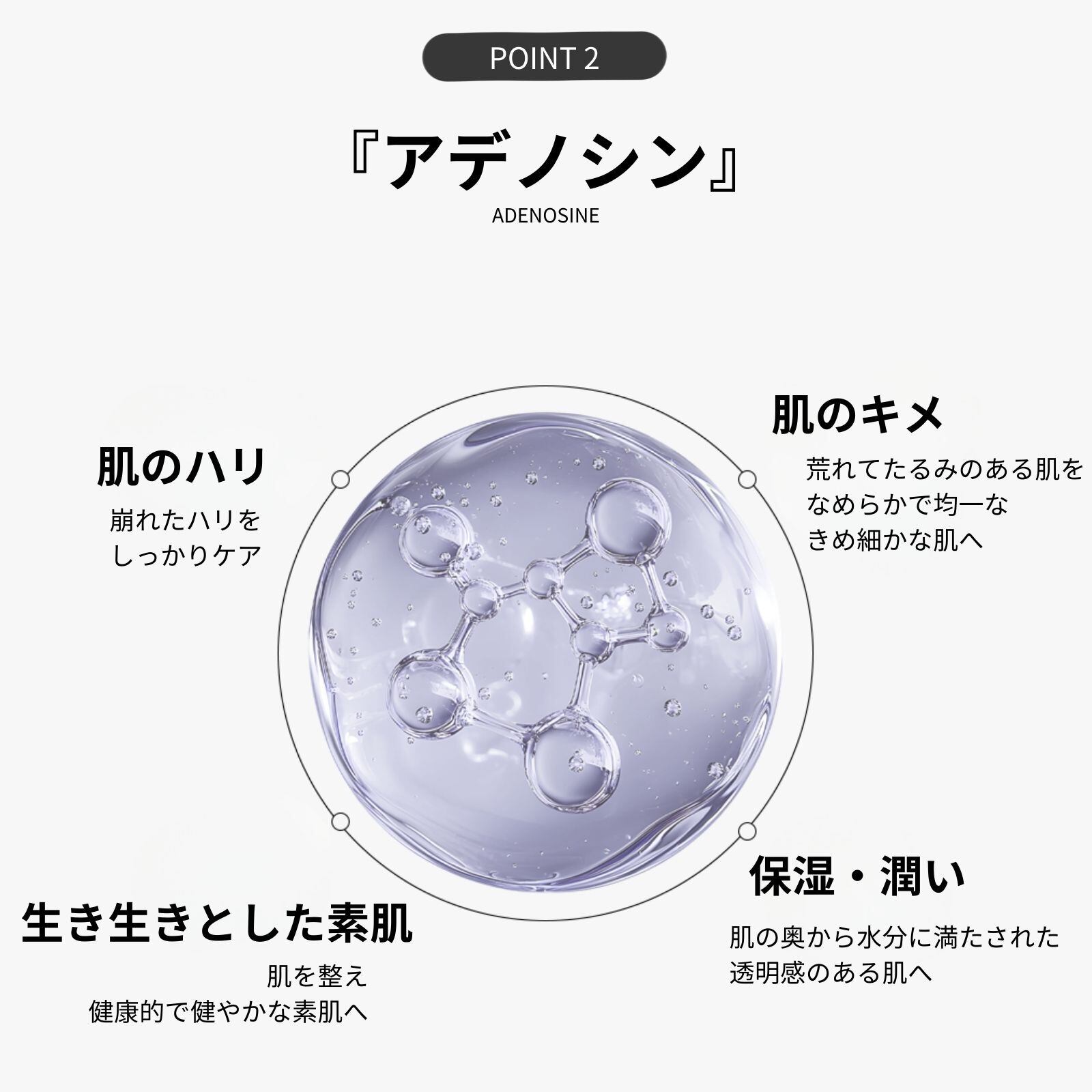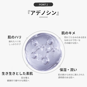 メラニンの生成を抑えシミやくすみを改善する効果が期待できる「ナイアシンアミド」と、肌のハリやシワなどへの効果が期待できる「アデノシン」も配合。毎日のケアでワントーン明るくそしてハリのある美肌へと導いてくれます。