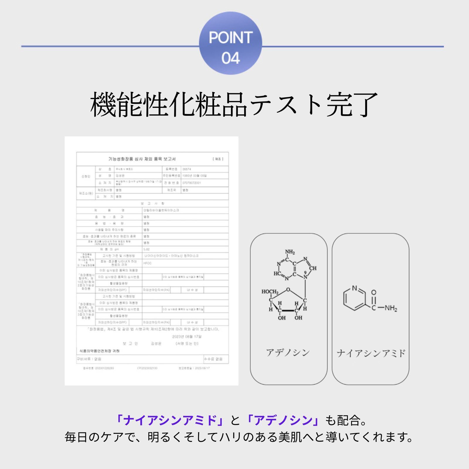 敏感肌・乾燥肌・にきびなどにお悩みの方にもお使いいただけるよう、お肌に優しい逸品に仕上げました。韓国にて皮膚刺激性テスト済み(ヒトパッチテスト)。