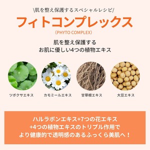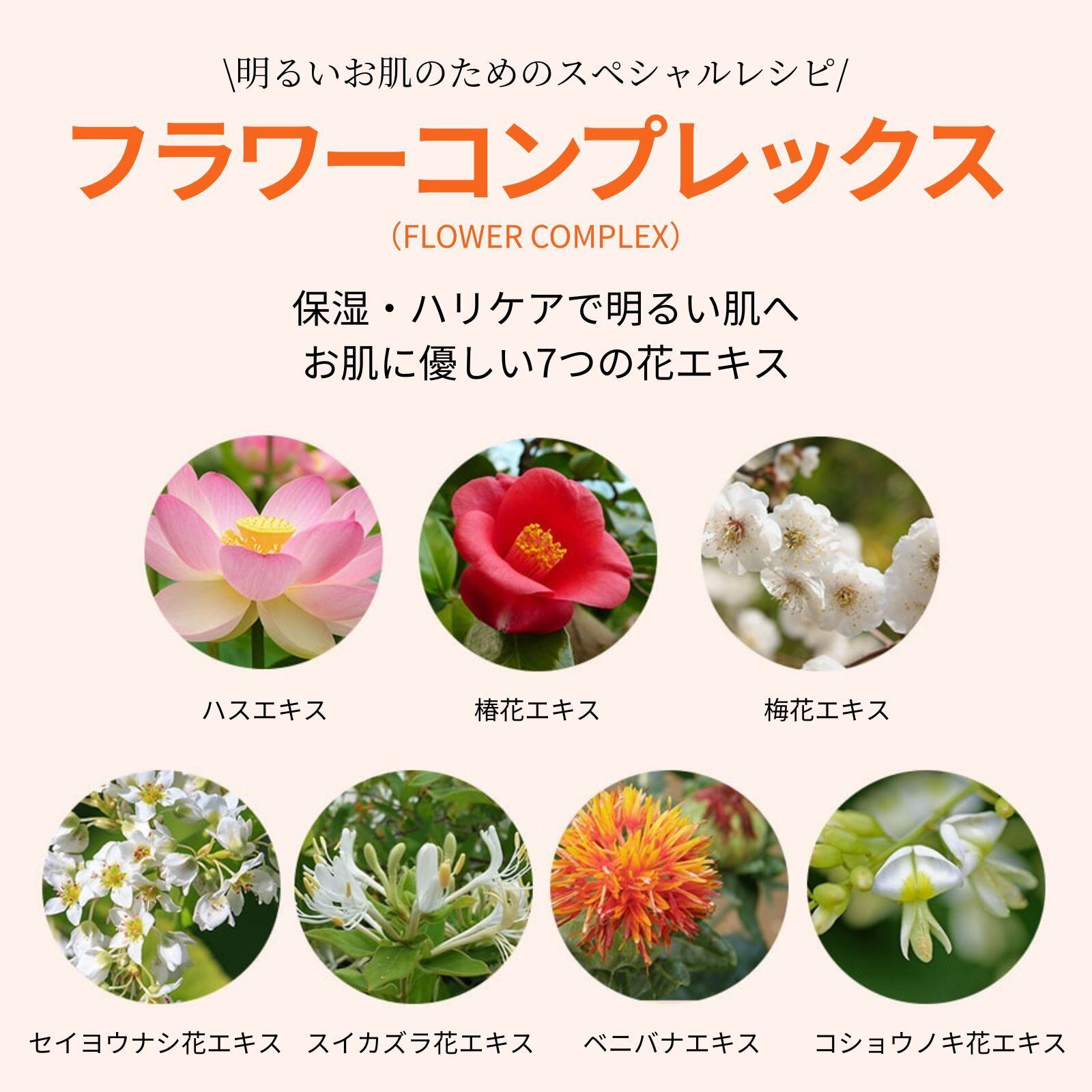 ハルラボンエキスに加え、保湿やトーンアップ効果のあるハス・椿・梅などの7種類のお花エキス、お肌のバリア効果を高めてくれるツボクサ・カモミールなどの4種類の植物エキスもプラス。より健康的で透明感&弾力のあるふっくらお肌へ!