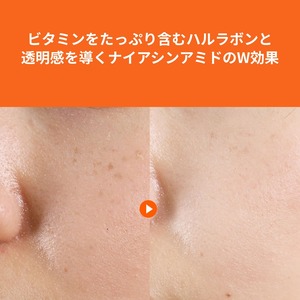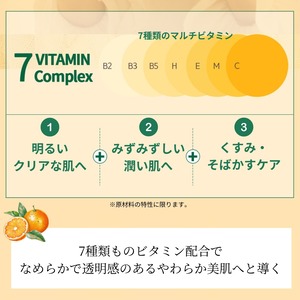 なんと7種類ものビタミンを贅沢に配合(ビタミンC・E・B2・B3・B5・H・M)し、透明感を導くナイアシンアミドもプラス。ハリがあってみずみずしい、クリアで透明感のある、ふっくらもっちり肌に!