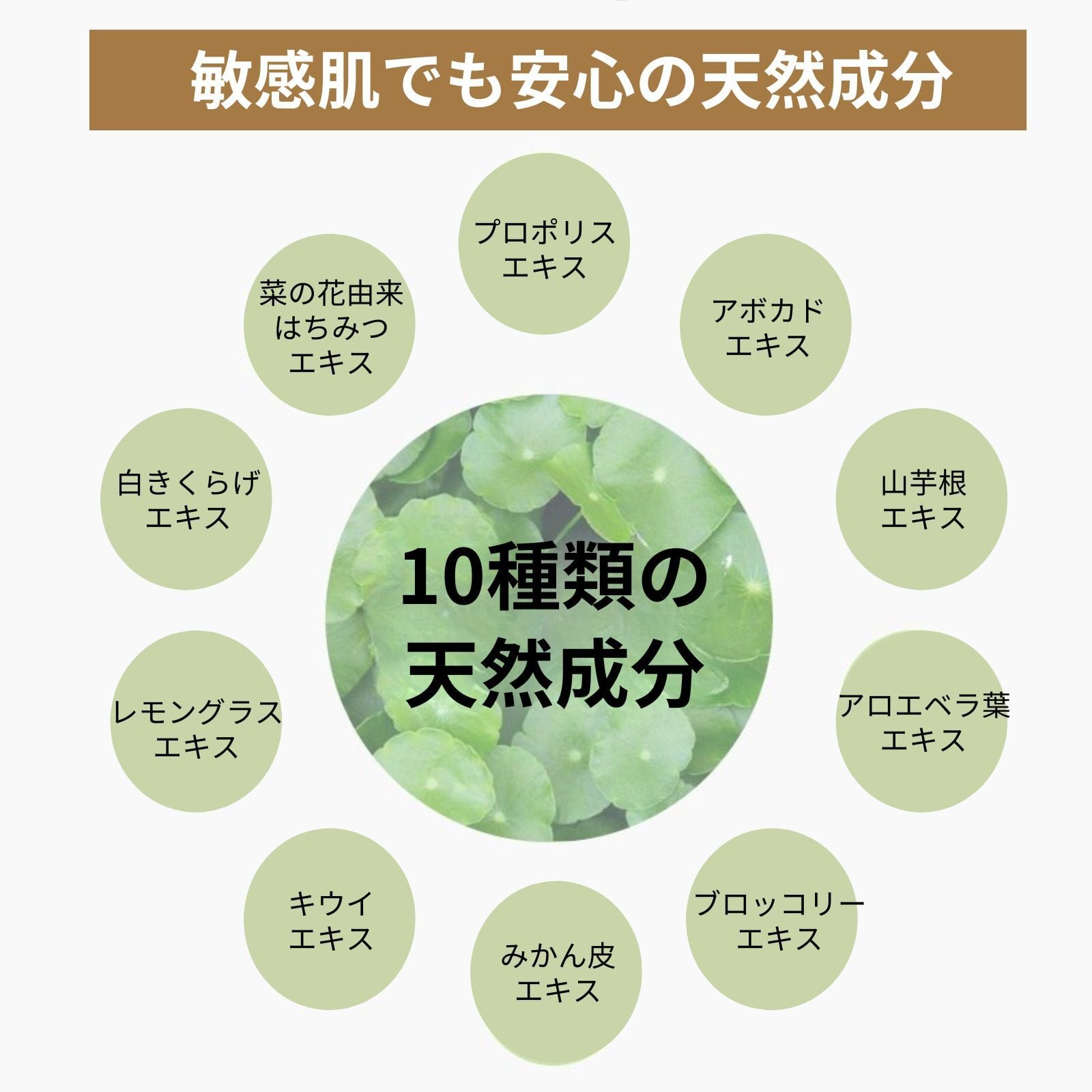 植物由来&低刺激に徹底的にこだわり、アボカドエキス・山芋根エキス・白きくらげエキス・アロエベラ葉エキスなどの厳選した植物エキスも配合。お肌に優しい逸品に仕上げました。韓国にて皮膚刺激性テスト済み(ヒトパッチテスト)。