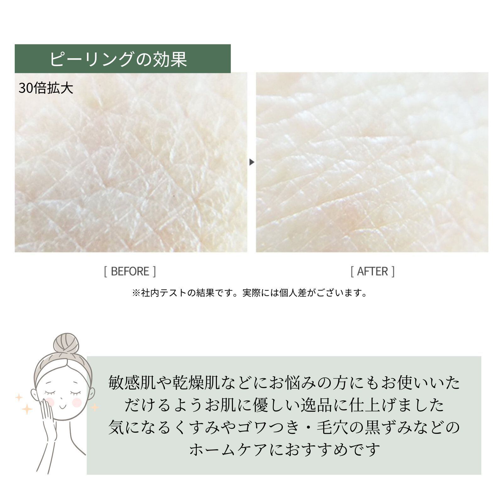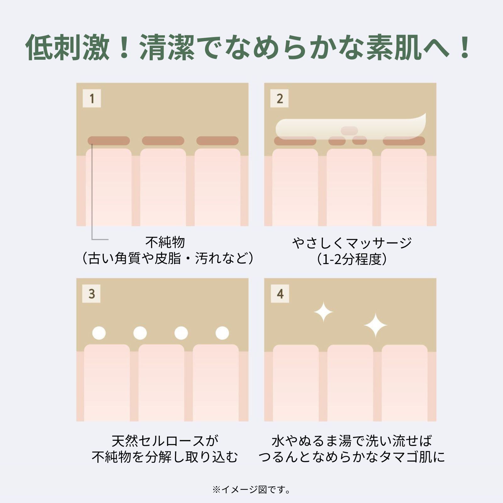 自然由来の天然セルロースが、肌表面の古い角質や毛穴に溜まった老廃物がどんどん分解。ポロポロ取れていき、まるで生まれ変わったようなつるんとなめらかなタマゴ肌に!気になるくすみやゴワつき・毛穴の黒ずみなどのホームケアにおすすめです♪