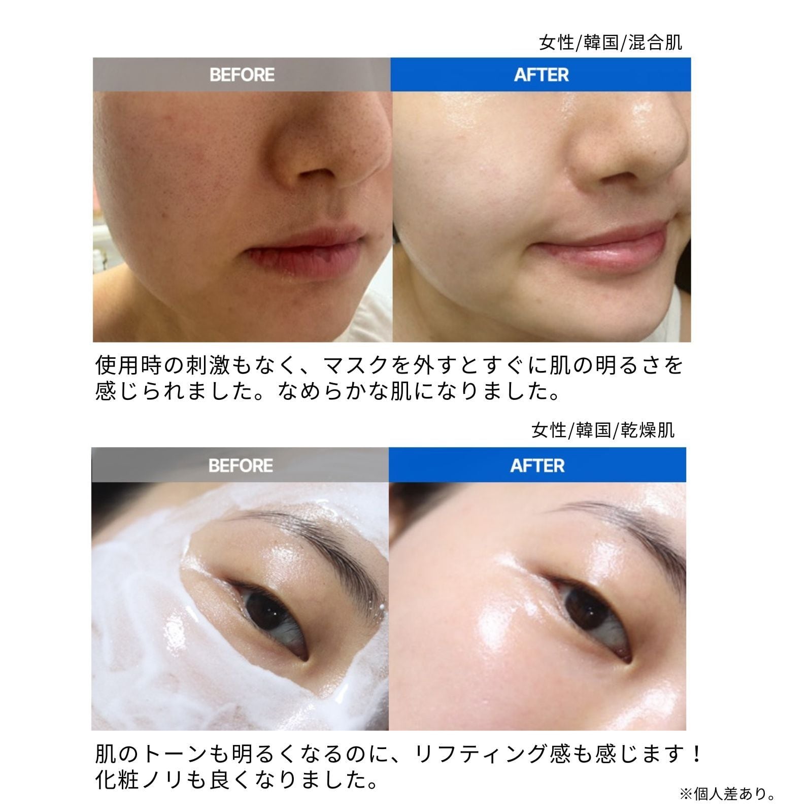 敏感肌・乾燥肌・にきびなどにお悩みの方にもお使いいただけるよう、お肌に優しい逸品に仕上げました。韓国にて皮膚刺激性テスト済み(ヒトパッチテスト)。